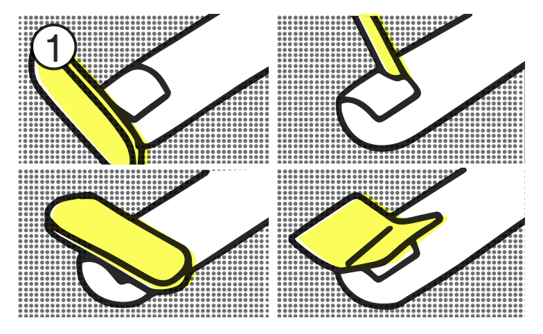 - Roll off all the sticky tabs on your nail beds or press-on nails with the mini cutile stick.