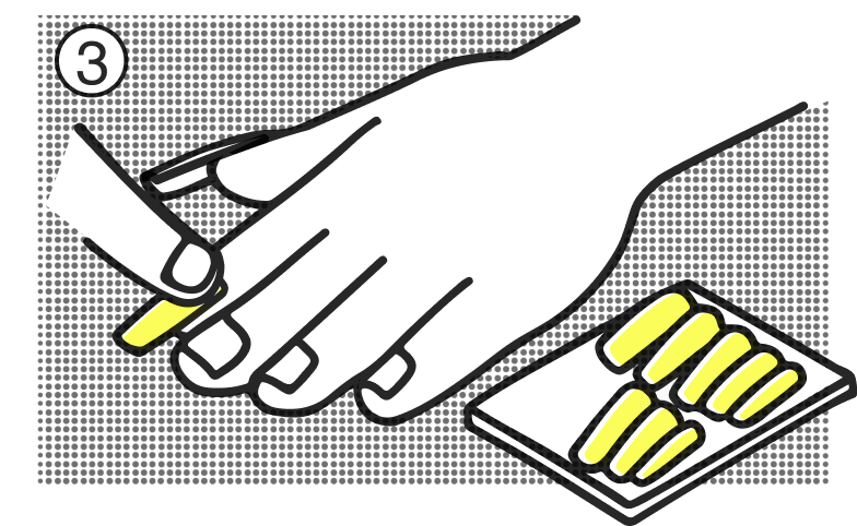 Select the right size sticky tab for each nail and apply them onto your nail beds.