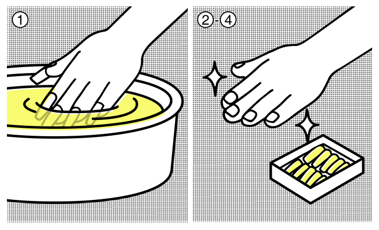 - Prepare hot water (not boiling hot) mixed with soap and oil. Soak your fingers in for 10-15 minutes.